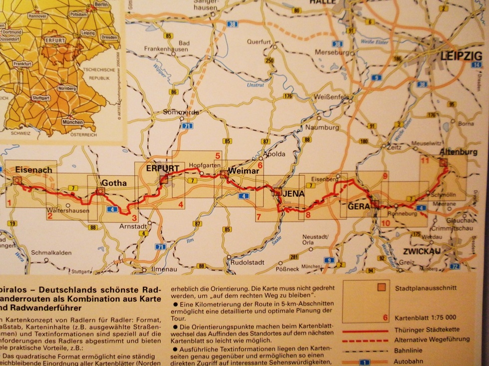 Das Auto am Hotel in Eisenach geparkt und dann per (damals noch) Bio-Bike von Eisenach über Drei Gleichen, Gera, Erfurt, Weimar, Jena bis Gotha und dann mit dem Zug zurück..